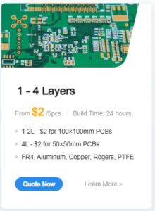 Hình 1. Giá mạch mẫu 1-2 lớp khi đặt mạch JLC chỉ từ 2$/ 5 mạch