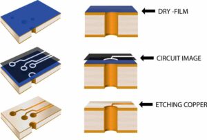 - Ăn mòn: Phần kim loại đồng không cần thiết cho thiết kế sẽ được loại bỏ bằng phương pháp ăn mòn.