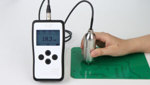 Hình 8. Đo độ dày lớp tẩm phủ conformal coating bằng đồng hồ đo dòng điện xoáy